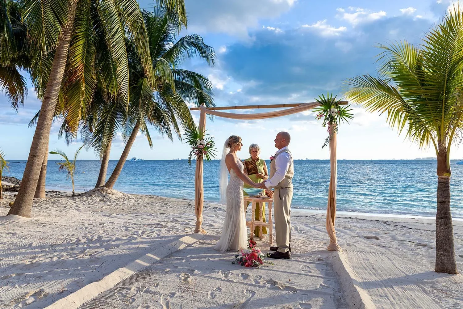 Your collection also includes a pre-ceremony photo session at Punta Sur, one of the most dramatic and beautiful locations on Isla Mujeres. This gives you the chance to experience both the cliffs and your private beach ceremony without having to choose between them.